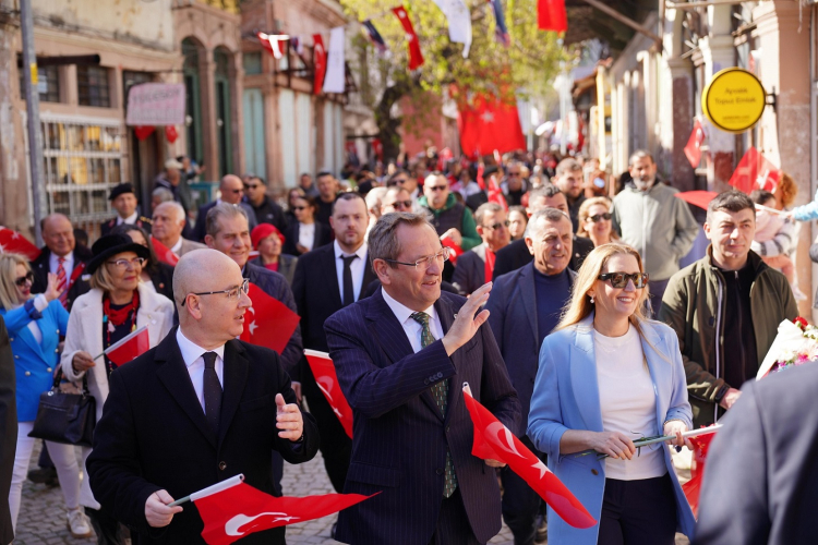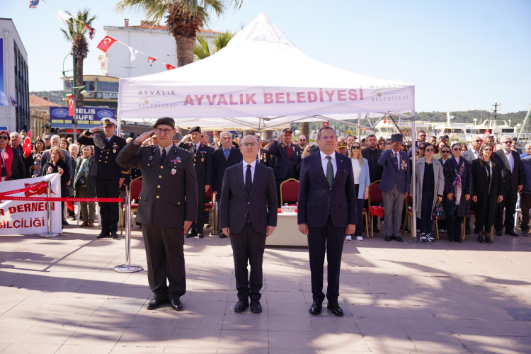 Cumhuriyet Meydanı’ndaki tören, saygı duruşu ve İstiklal Marşı ile başladı. Çelenk sunumunun ardından konuşan Belediye Başkanı Mesut Ergin, 13 Nisan 1934’te Atatürk’ün Ayvalık’ı ziyaret ettiğini hatırlatarak, “Ulu Önder’in devrimlerinin halkta nasıl bir ivme kazandığını bizzat görmek için yurt gezilerine çıktığını bugün daha iyi anlıyoruz. Ayvalık halkı, Atatürk’ün izinden yürümeye devam edecek” dedi. Ergin, Atatürk’ün kırmızı halıyı kaldırarak vatandaşlarla birlikte yürüdüğü anları vurguladı ve ilçenin sonsuza kadar Ata’sına bağlı kalacağını ifade etti.