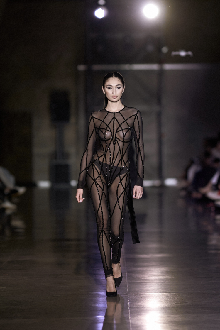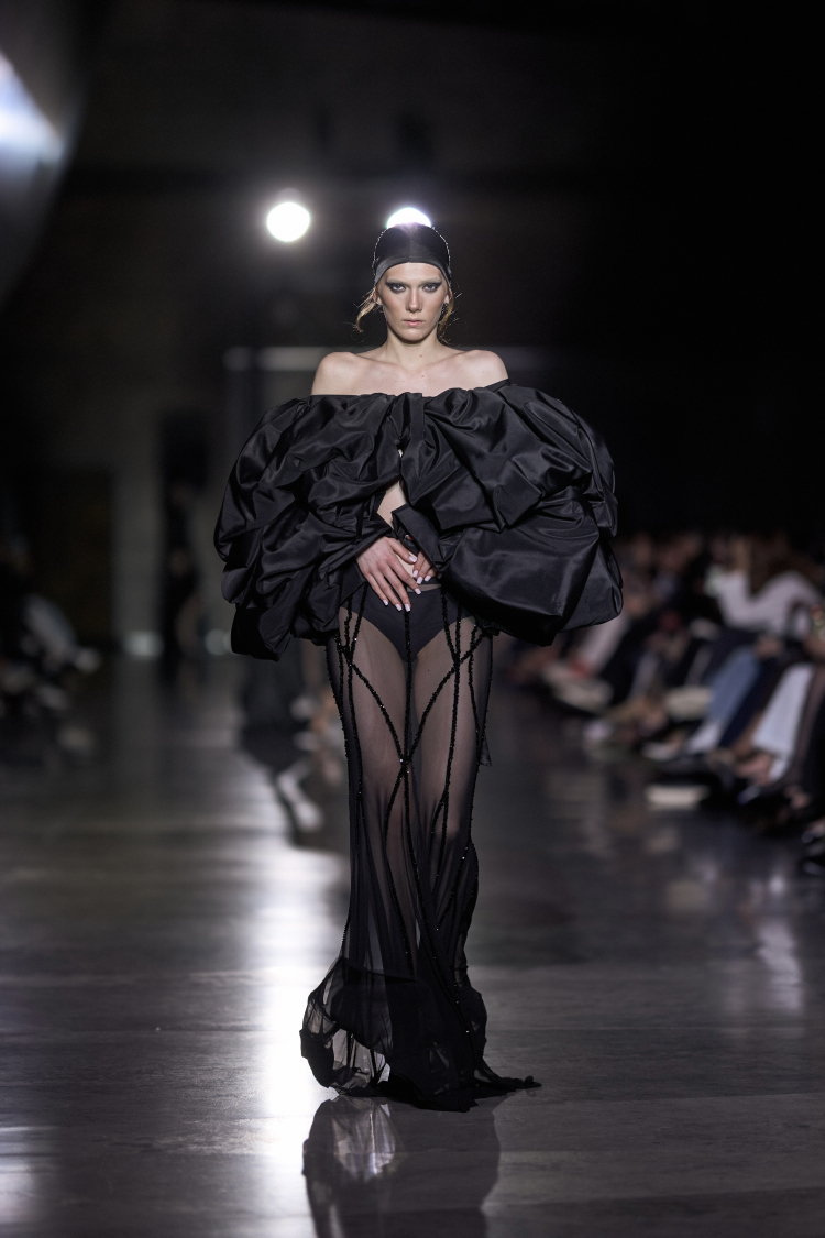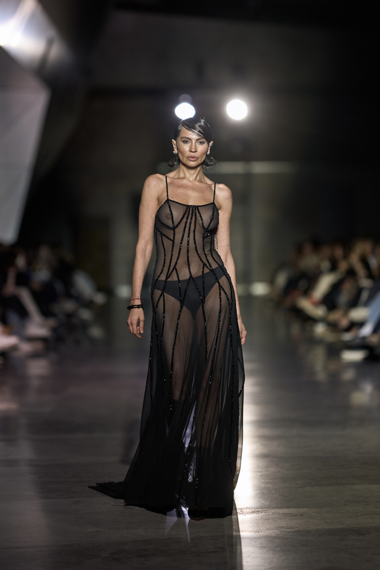 Transparan dokularla bütünleşen heykelsi formlar, zamansız şıklığı, dişil gücü ve stilin dönüştürücü etkisini ortaya koyuyor. İnce transparan dokularla birleşen heykelsi formlar, zarafeti bir zırh gibi taşıyan güçlü kadın silüetlerini sahneye taşındı.
