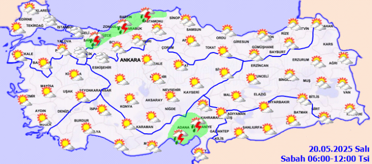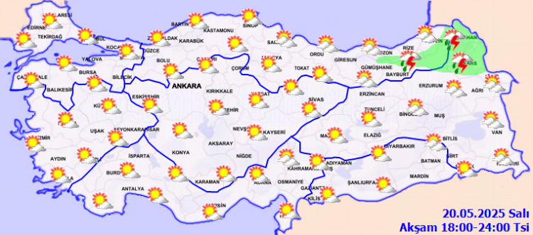 ANKARA (İGFA) - Meteoroloji Genel Müdürlüğü, 20 Mayıs Salı gününe ilişkin hava tahmin raporunu yayımladı.