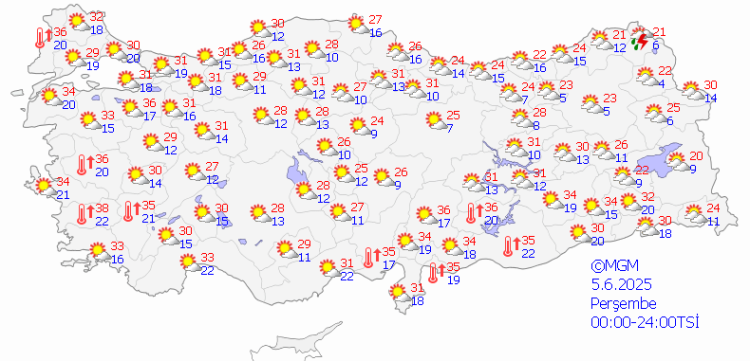 Öte yandan 5-9 Haziran 2025 tarihlerinde Ankara’da 32°C, İstanbul’da 31°C ve İzmir’de 35°C’ye ulaşması öngörülen sıcaklıklar, bayram boyunca yaz havasını hissettirecek.