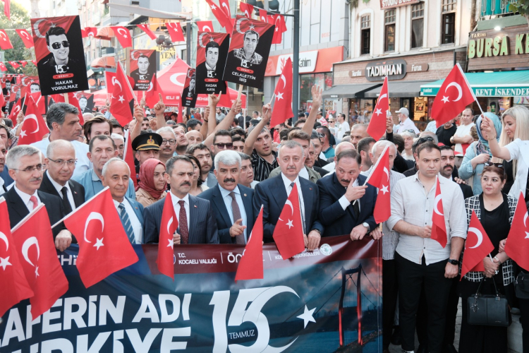Kocaeli Valiliği, Kocaeli Büyükşehir Belediyesi ve sivil toplum kuruluşlarının 15 Temmuz dolayısıyla birlikte düzenlediği "Zaferin Adı Türkiye" yürüyüşü gerçekleştirildi. Binlerce Kocaelili 9 yıl önce olduğu gibi 15 Temmuz heyecanını kaybetmediklerini gösterdi.