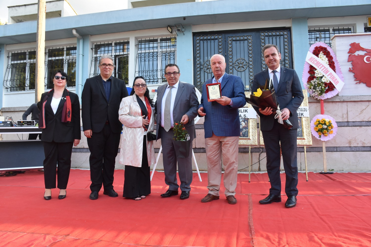 1975 mezunlarından Erol Hepyaşar ve Nuri Levent Göçmenöz, anılarını paylaşırken, eski vakıf başkanı Necmettin Pınar’a plaket, Okul Müdürü Erkan Tokdil ve ekibine çiçek takdim edildi.