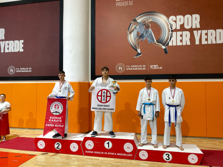 Erdoğan DEMİR / EDİRNE (İGFA) - Turnuvaya kata ve kumite branşlarında katılan sporcular, teknik yeterlilikleri, sportmen duruşları ve centilmence mücadeleleriyle dikkat çekti. İl genelindeki kulüplerin katıldığı organizasyonda Keşan Karatecileri, yıl boyunca süren disiplinli çalışmalarının karşılığını kürsüde almayı başardı.
