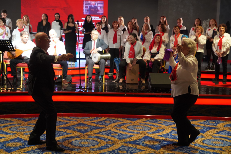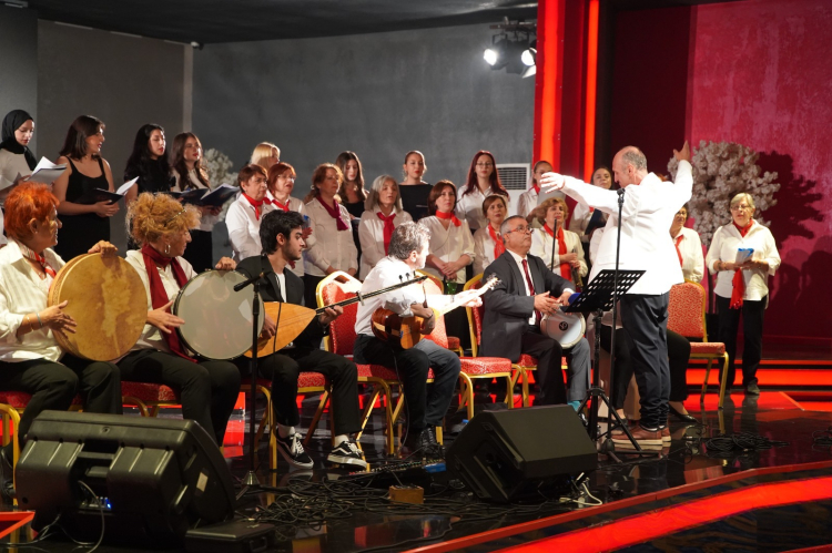 Topluluk, Genel Sanat Yönetmeni şef Erdinç Ertüzün yönetiminde Balkanlardan gelen solistlerin seslendirdiği Atatürk’ün sevdiği türküler yanında cumhuriyetin ilanını yurdun her yöresinden halaylar horonlar zeybekler barlarla kutladıkları birbirinden güzel eserleri salondaki tüm gençlerle birlikte coşkuyla seslendirdi.