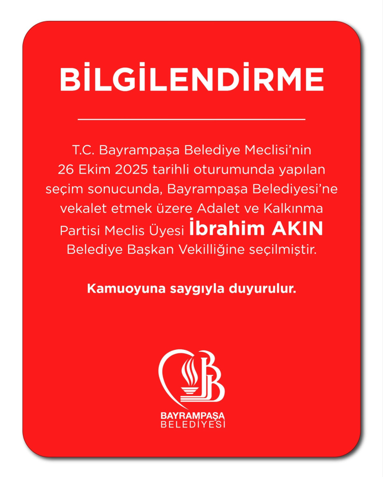 İstanbul Bayrampaşa'da mevcut belediye başkanı Hasan Mutlu'nun görevden uzaklaştırılması ardından yapılan Belediye Başkan Vekilliğine, Cumhur İttifakı adayı AK Partili İbrahim Akın seçildi. Dördüncü tur sonunda AK Partili Akın 19 oyla başkan vekili seçilirken, CHP adayı Recep Öztürk ise 18 oy aldı.