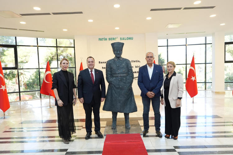 Cumhuriyet Meydanı’ndaki Atatürk ve Milli Egemenlik Anıtı’na çelenk sunulmasının ardından, Fatih Sergi Salonu’nda Atatürk Heykelleri: Cesaret ve İlhamın Sergisi açıldı. Yoğun ilgiyle gezilen sergide 1905-1938 yılları arası 10 farklı dönemi temsil eden Atatürk büstleri serisinden oluşan heykeller yer aldı. Küratörlüğünü Uluslararası Müzecilik Derneği Başkanı Derya Manav’ın yaptığı sergide, heykeltıraş Selçuk Yazıcı’nın eserleri beğeniye sunuldu. Sergi, Cumhuriyetin kurucusu Gazi Mustafa Kemal Atatürk’ün düşünsel mirasını ve devrimlerini sanatın diliyle yeniden yorumluyor. Açılışı yapılan Atatürk Heykelleri Sergisi, sadece bir 29 Ekim Cumhuriyet Bayramı etkinliği değil, Cumhuriyet’in yüz yıllık değerlerini yansıtan gezici bir müze olarak vatandaşlara olan yolculuğuna devam ediyor. Usta sanatçı Devrim Erbil’in ‘Atatürk, Kurtuluş ve Devrimler’ isimli eseri de eşlik ederek sergiye anlamlı bir katkı sundu.