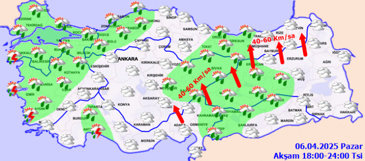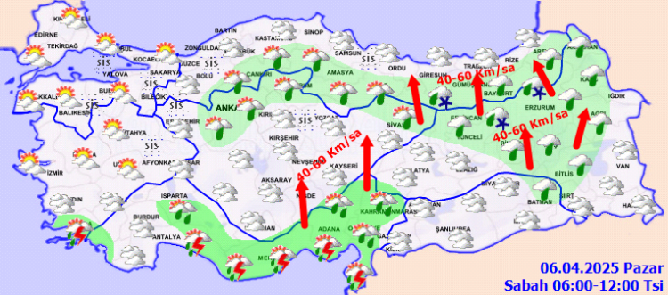 ANKARA (İGFA) - Meteoroloji Genel Müdürlüğü, 06 Nisan Pazar gününe ilişkin hava tahmin raporunu yayımladı.