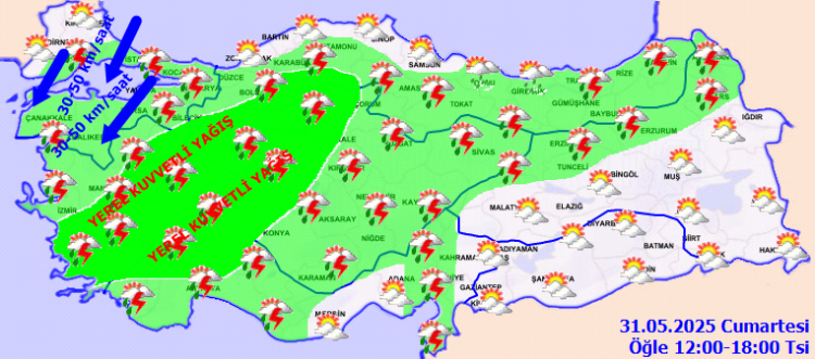 Meteorolojiye göre Türkiye genelinde parçalı ve çok bulutlu hava, Marmara, Ege, Akdeniz ve İç Anadolu dahil birçok bölgede sağanak yağış bekleniyor. Rüzgar Marmara'da kuvvetli esecek. Doğuda sıcaklıklar artarken, kuvvetli yağış ve rüzgar için uyarı yapıldı.