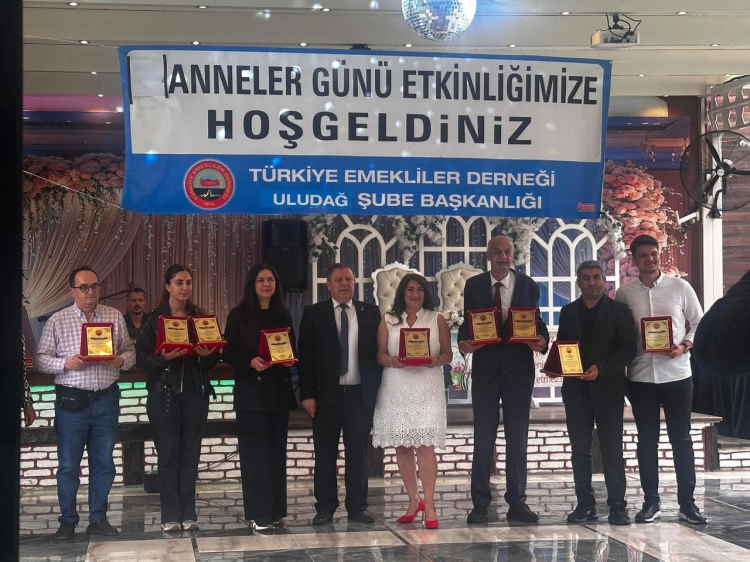 Türkiye Emekliler Derneği Uludağ Şubesi, Anneler Günü etkinlikleri kapsamında kadın üyeleriyle bir araya geldi. Çekirge Kır İstasyonu'nda düzenlenen etkinlikte TÜED Uludağ Şube Başkanı Kenan Pars, İGF Haber Ajansı (İGFA) Genel Koordinatörü Sevil Şaru’ya ve Herkes Duysun ekranlarında Önce Ekonomi programını sunan Gülay Soydan Pehlevan’a plaket takdim etti.